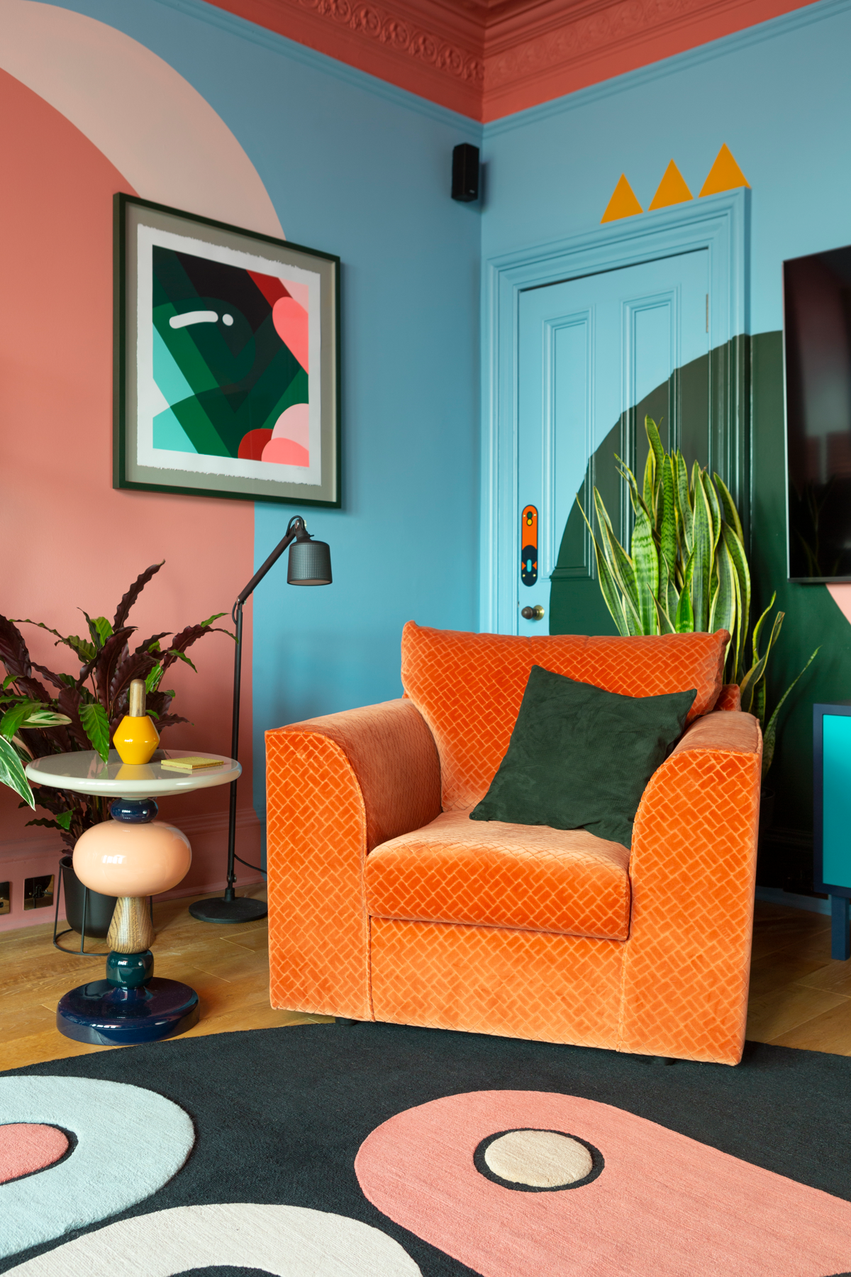 Merchiston Crescent is a residential interior design project for a computer game designer in Edinburgh. The brief was simple: Create a room that makes people say ‘wow’ upon seeing the space. Studio Sam Buckley created an exciting, colourful interior design scheme that not only met the brief, but which has gone on to grace the pages of interior design magazines in South Korea, Hong Kong, India, Dubai, Germany, The Netherlands, France and Italy, as well as the UK.